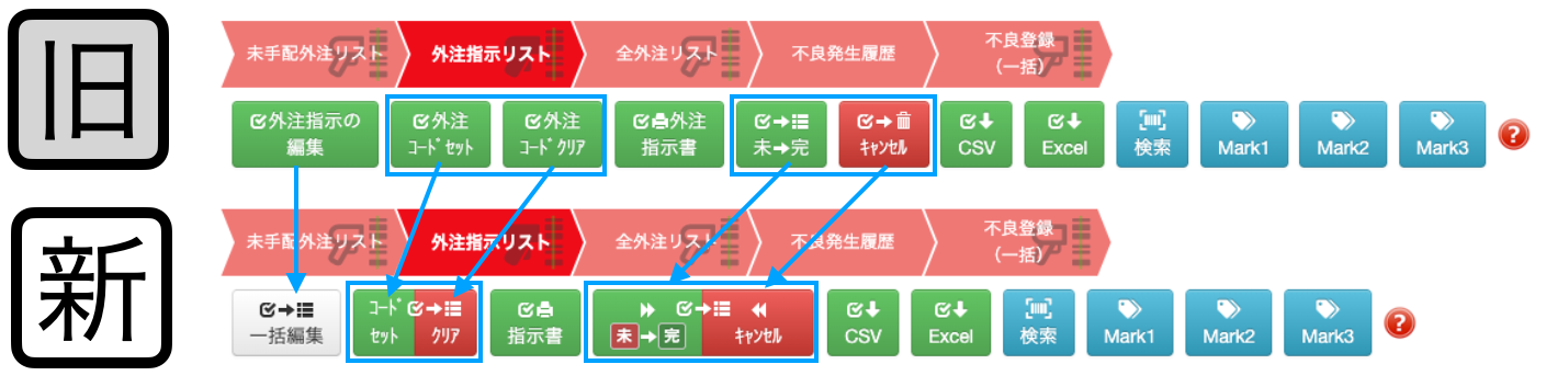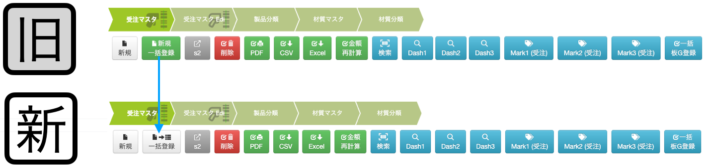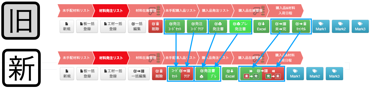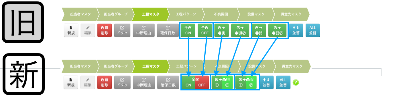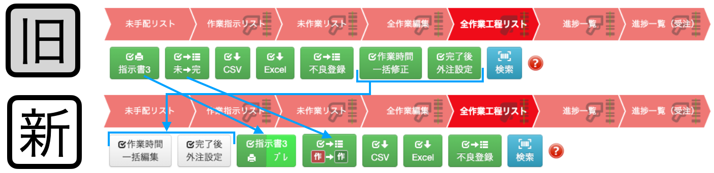 全作業工程リストに設置されているボタンの配置と色を変更しています。(機能は変わりません)